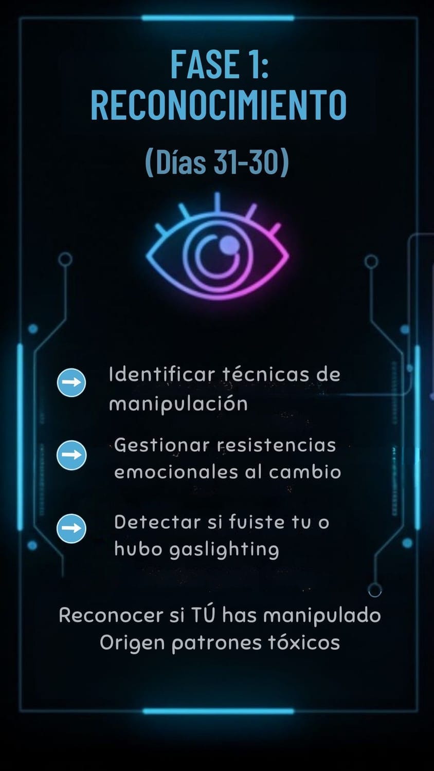 Descripción: Plantilla de prevención y Auto-Diagnóstico Emocional, para reconocer las 20 técnicas de manipulación que usan los narcisistas, jefes tóxicos y parejas controladoras — muchas veces sin que tú lo notes. Cuando las nombras, dejan de tener poder sobre ti.